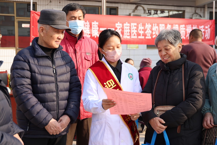 近日,河北省邢台市新河县卫生健康局组织家庭医生走进社区开展签约服务活动。活动现场,医护人员为居民免费测量血压、血糖,同时向居民提供健康指导,宣传家庭医生签约政策和惠民举措。