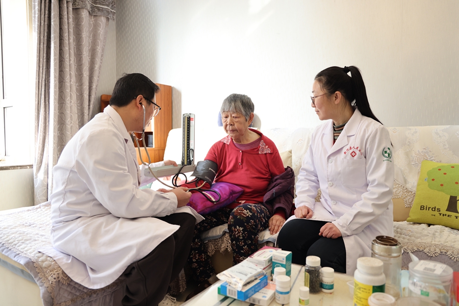 医务人员为居民检查身体。周洪佳 摄