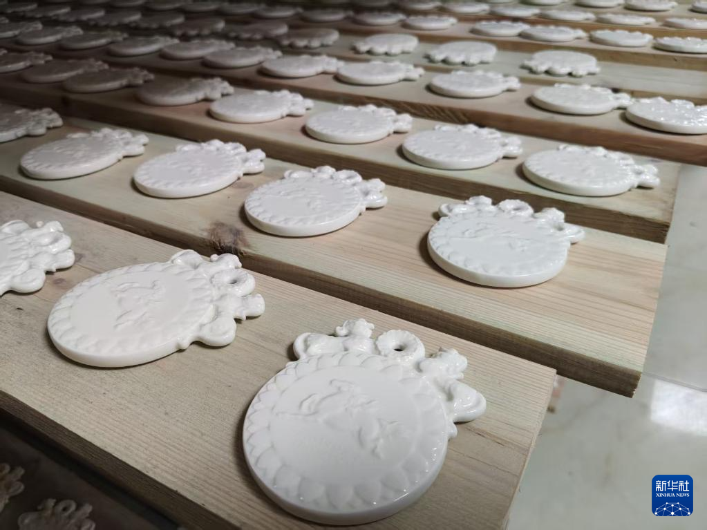 3月13日,烧制出窑的定瓷奖牌在进行阴干。新华社记者 杨帆 摄