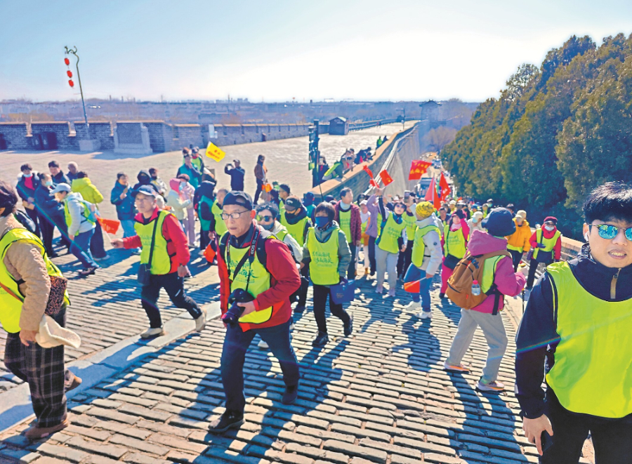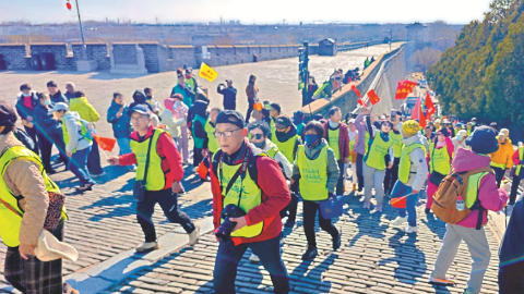 本次活动由市体育局、山海关区政府主办,山海关区教育和体育局、山海关区旅游和文化广电局承办。清晨的天下第一关广场热闹非凡,随着鸣笛声响起,徒步活动正式开始。5000余人的队伍沿着精心设计的长城路线前行,途经箭楼、临闾楼、威远楼门等历史地标,一路感受长城的雄伟壮阔,尽享徒步健身的酣畅淋漓。此次活动深度融合传统民俗与现代体育,以“二月二龙抬头”的民俗内涵为灵魂,以山海关长城的历史底蕴为载体,让“摸龙头、走长城、祈丰年”成为连接传统与当下的文化纽带。参与者纷纷表示:“用脚步丈量长城,在传统民俗中感受文化魅力,这样的活动既接地气又有深度。”