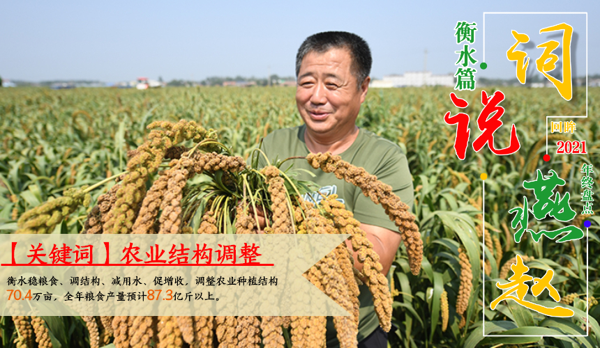衡水市农业农村局局长何洪超表示,在稳定粮食生产方面,衡水市划定480万亩粮食生产核心区,细化落实到乡镇、村、地块,新建设高标准农田45万亩。以农业园区和“万元田”为抓手,大力发展现代都市型农业,调整农业种植结构70.4万亩,“万元田”达到33万亩。2021全年粮食产量预计87.3亿斤以上。