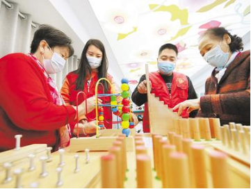 近日,祥和城小区的老人在志愿者陪伴下使用OT综合训练工作台,提高手眼协调能力。河北日报通讯员 高晓博摄