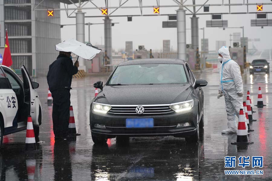 黄骅市公安局民警在国道、省道、县乡村路口排查、疏导往来车辆。新华网发 罗栋 摄