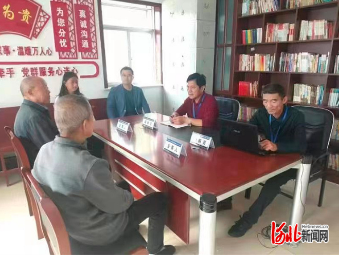 图为在临西县临西镇仓上村“玉兰调解室”,调解员在调解村民之间的矛盾纠纷。