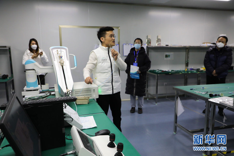 2月21日,工作人员在保定·中关村创新中心讲解微创血管介入手术辅助系统。新华网 王立鹏摄