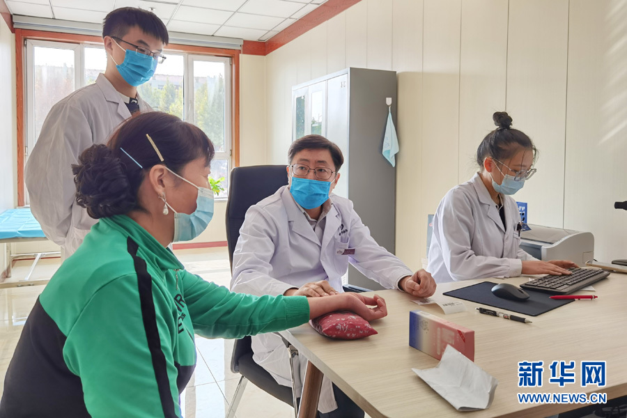 中国中医科学院广安门医院专家在保定市第一中医院把脉问诊。新华网发 张卓摄