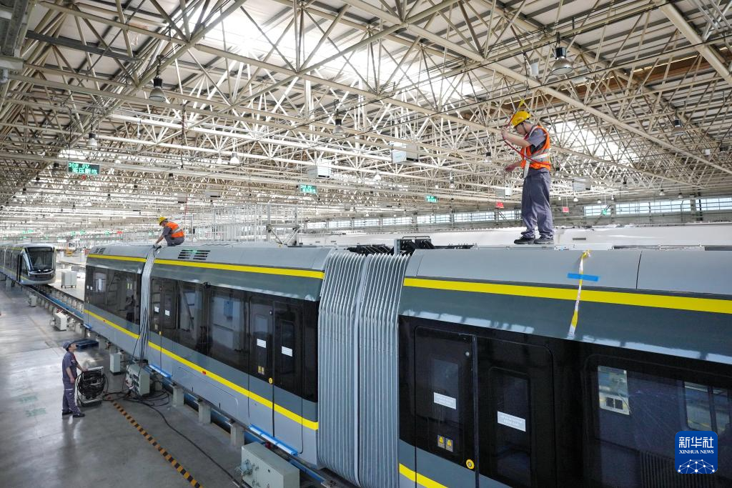7月1日,河北省唐山市丰润区中车唐山公司的工人在地铁列车生产线上工作。