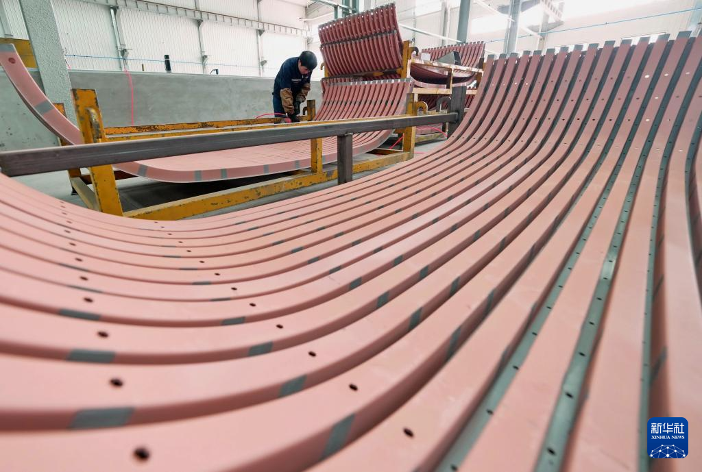 7月1日,工人在河北省唐山市丰润区一家动车组列车配件企业的生产车间工作。