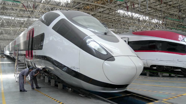 7月1日,河北省唐山市丰润区中车唐山公司的工人在动车组调试车间工作。