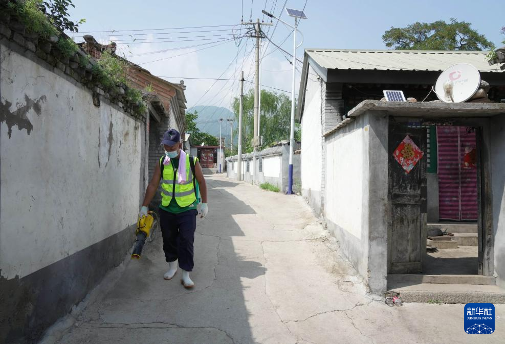 8月9日,工作人员在涞水县九龙镇南庄村开展防疫消杀作业。