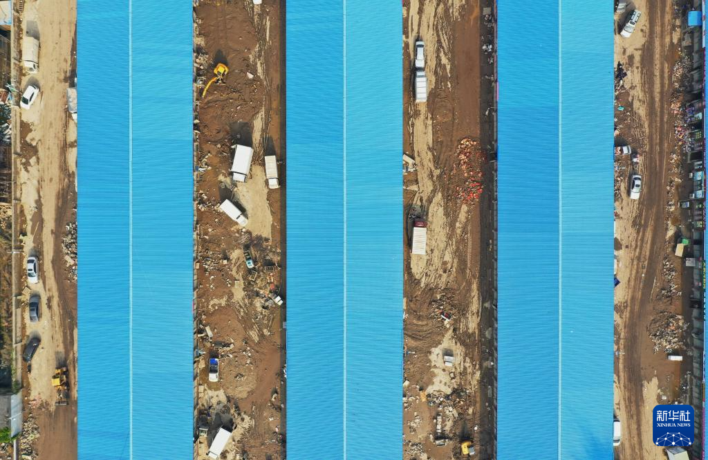 这是洪水退去后的涿州新发地大石桥农副产品批发市场(8月9日摄,无人机照片)。