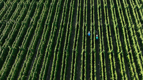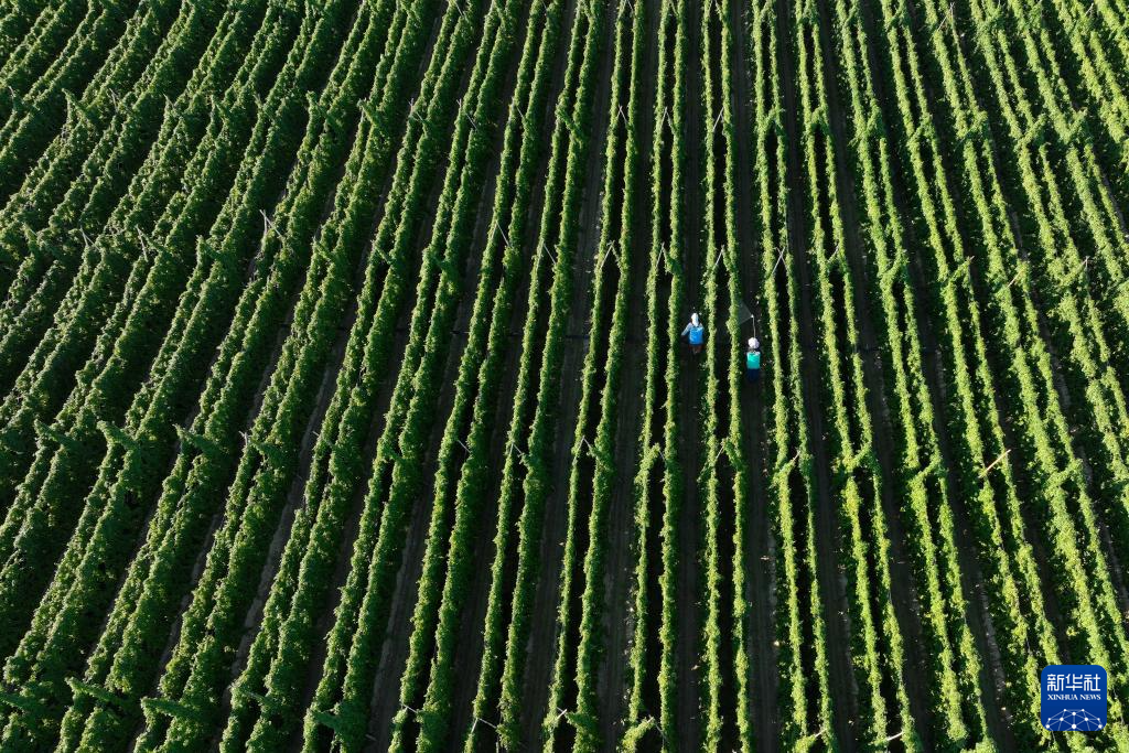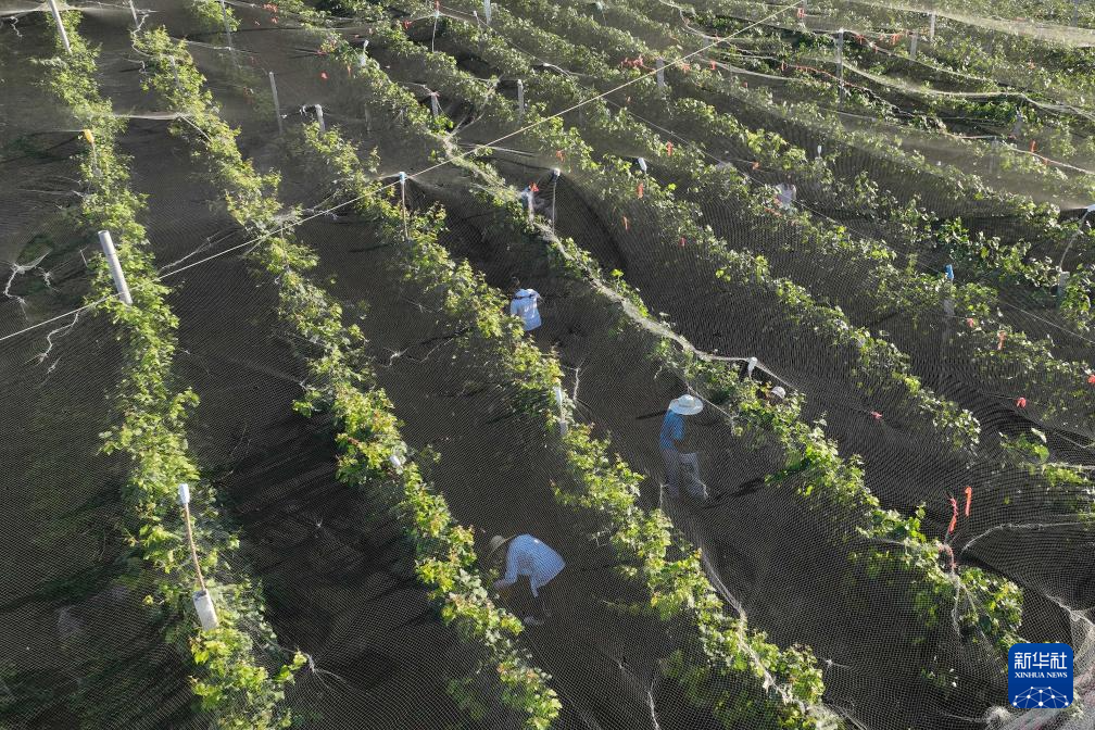 8月22日拍摄的吴桥县安陵镇窑厂店村吴桥县胜彦粮棉种植专业合作社葡萄园(无人机照片)。
