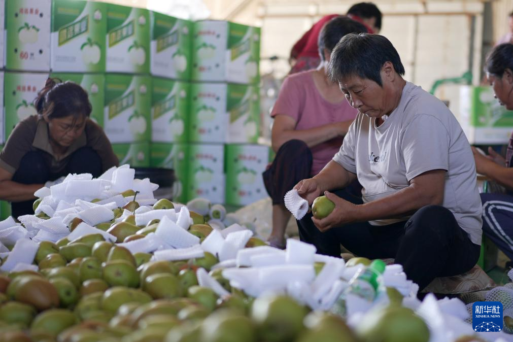 8月22日,在吴桥县于集镇吴桥县华森果品种植专业合作社,村民们将刚采摘的梨进行分拣包装。