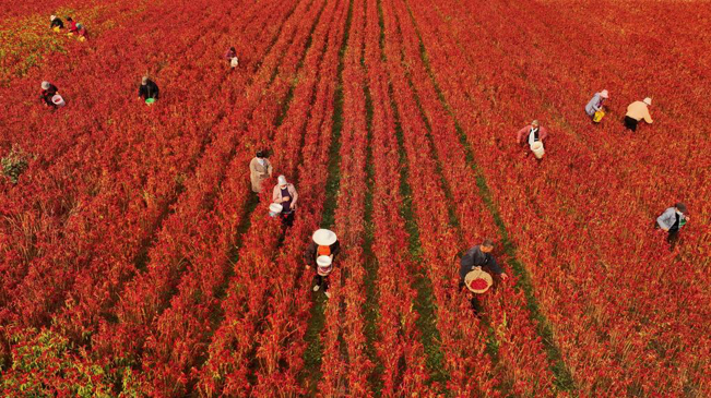 金秋时节,河北省滦州市油榨镇种植的朝天椒迎来收获季。近年来,河北省滦州市依托自身农业优势,结合市场需求,引导农民采取“合作社+农户”的模式因地制宜发展朝天椒种植,逐步形成集育苗、种植、销售于一体的辣椒产业链,有效促进农民增收。