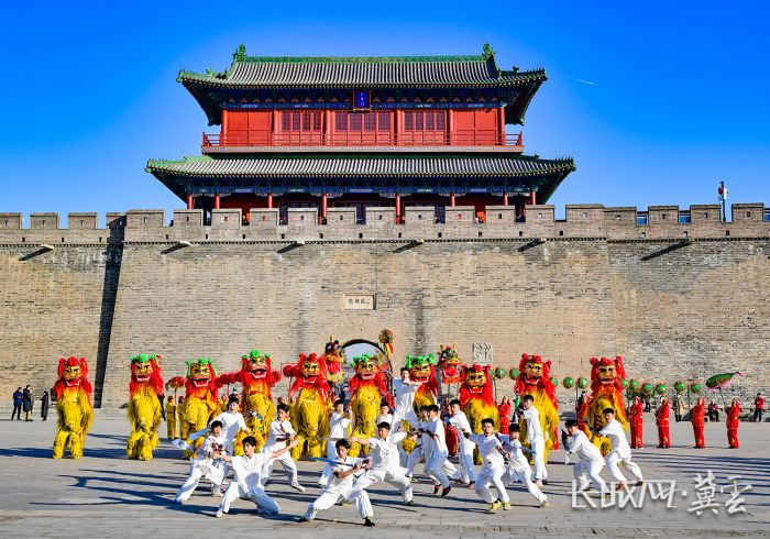 正定古城墙下,非遗文化表演为东方甄选河北专场拉开了帷幕。常山战鼓、清苑绣球龙灯、徐水舞狮、沧州武术……这些展现河北传统文化的精彩表演,让直播间洋溢着热闹喜悦的氛围,引发在线观众纷纷点赞。