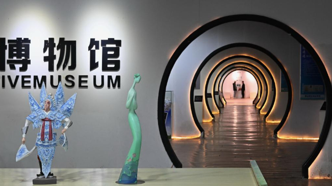 11月21日,游客在唐山市开平区陶瓷文创产业园内的唐山骨质瓷创意博物馆参观。
