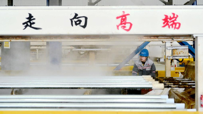 12月5日,成安县一家制管企业的工作人员在生产线上工作。
