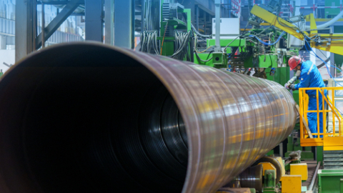 螺旋焊管和直缝焊管是两种常见的焊接工艺,都有各自的优势和应用场景。“螺旋焊管工艺更成熟,原材料更容易运输,成本也相对较低,很适合传统的油气市场;而直缝焊管工艺能处理的钢板厚度更大,利用这种工艺可以焊接出径厚比更小,也就是壁厚大、口径小的钢管,抗压性和抗腐蚀能力特别强,更符合新能源管材的要求。”沈长亮耐心讲解。