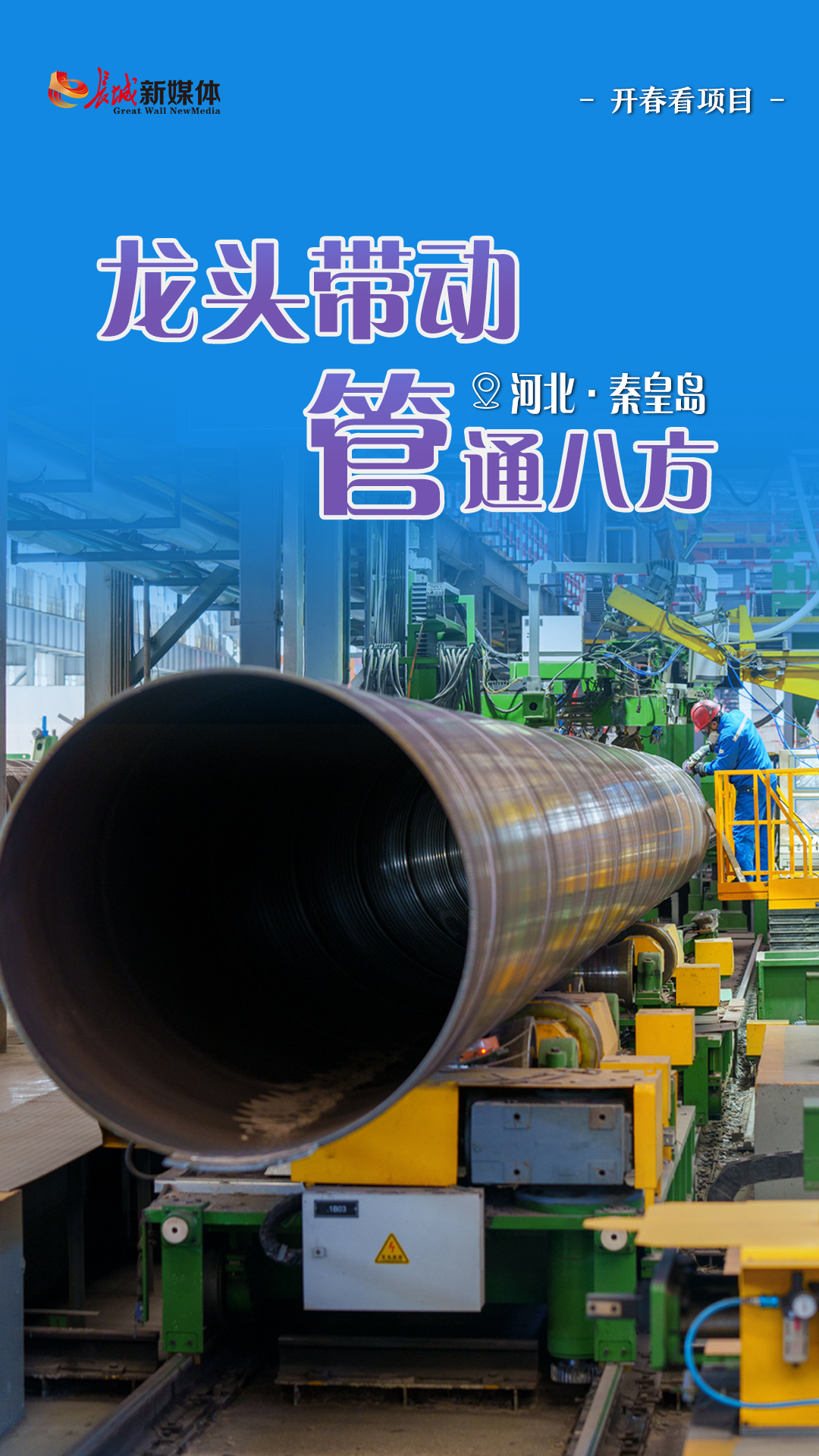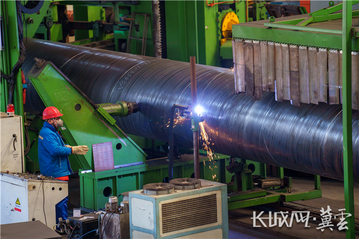 中油宝世顺(秦皇岛)钢管有限公司新能源管材厂正在进行螺旋焊管生产作业。长城网·冀云客户端记者 武佩剑 摄