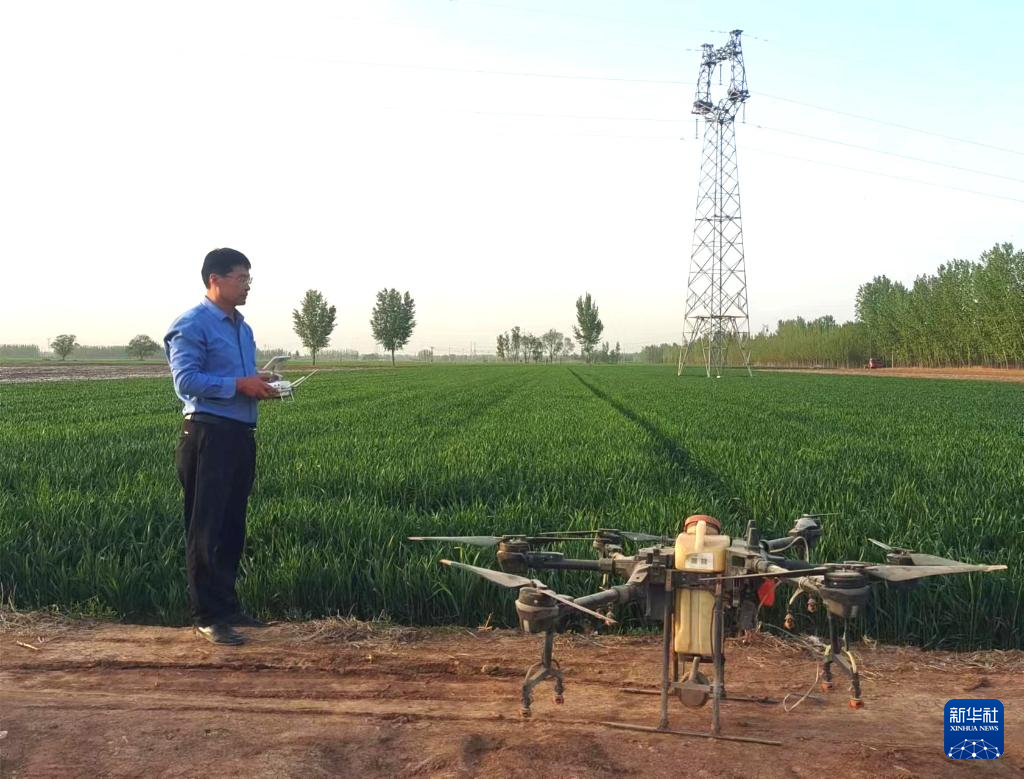 李学安在查看植保无人机情况。新华社记者 赵鸿宇 摄