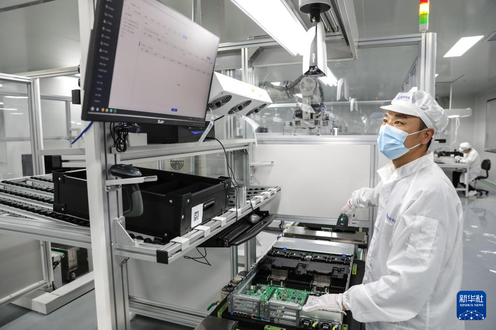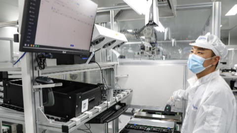 3月19日,雄安新区科创中心中试基地一家科技企业工作人员在对产品进行扫码。新华社发(刘潇 摄)