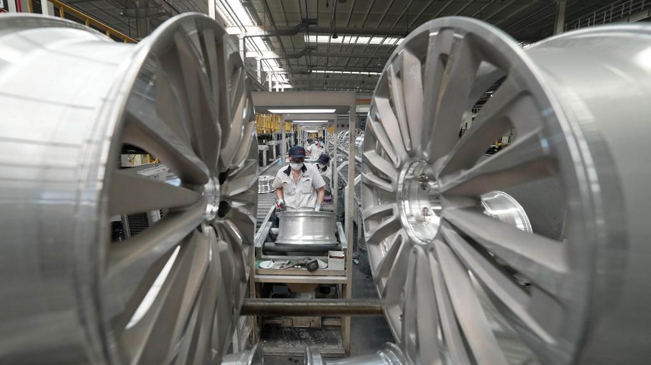 6月11日,工人在河北秦皇岛经济技术开发区一家车轮企业的生产车间工作。