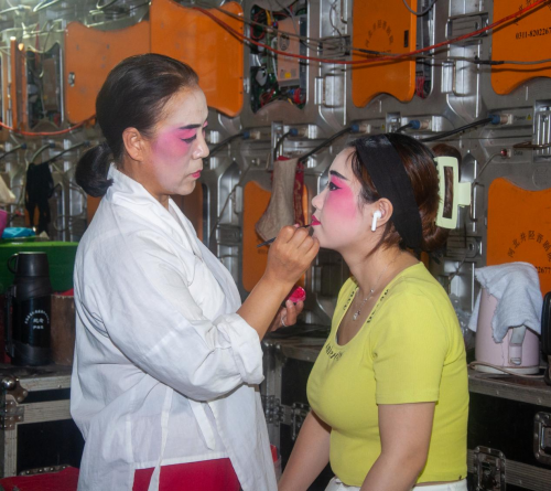 图为2024河北省优秀基层文艺院团文化惠民演出井陉站后台化妆