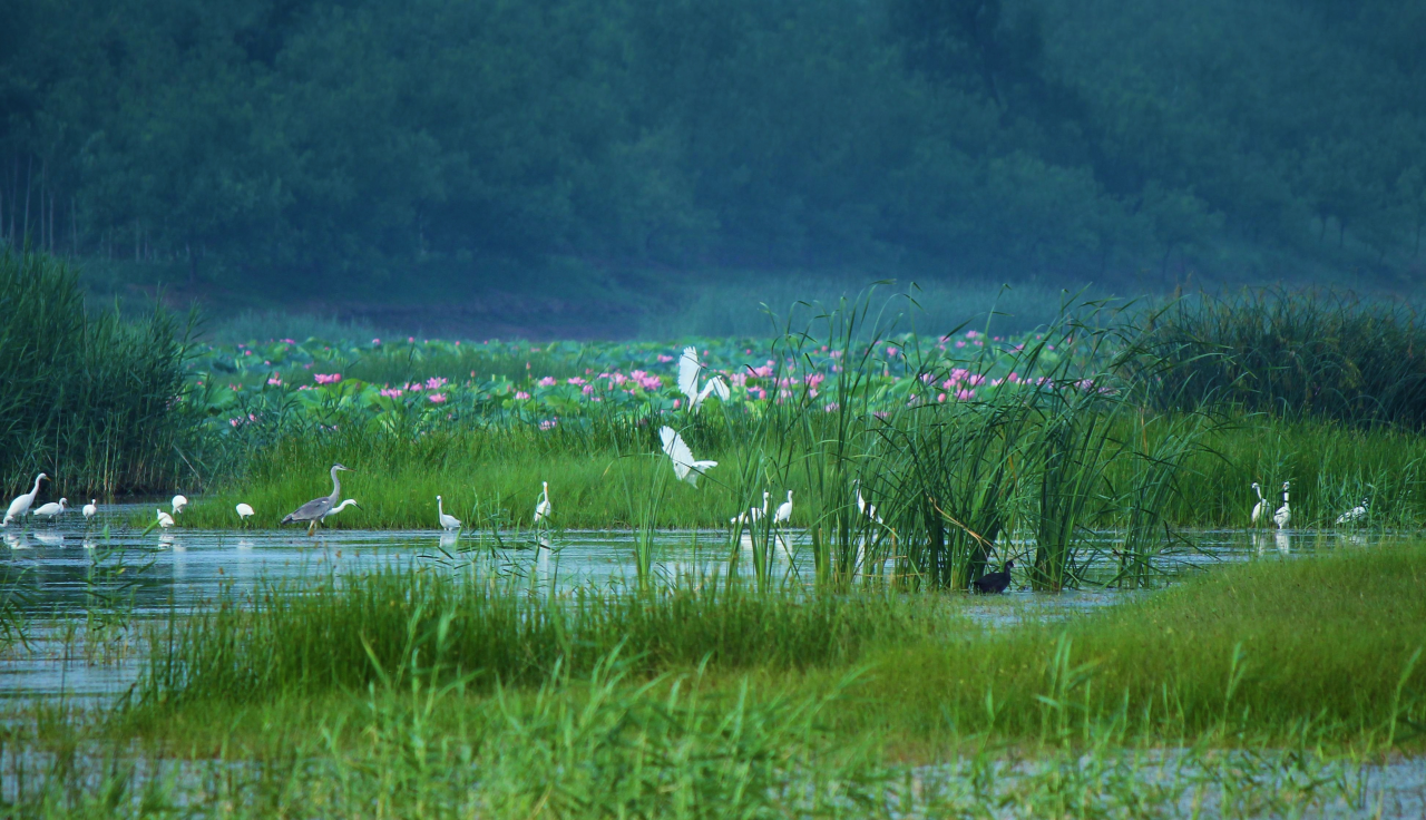 荷塘白鹭飞(摄于沧县大白洋桥)。沧州市自然资源和规划局供图