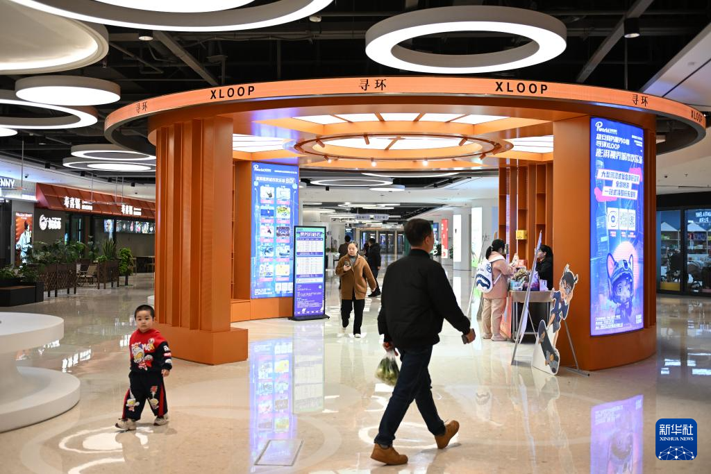 3月18日,市民在雄安新区商务服务中心寻环XLOOP商业环廊内购物。