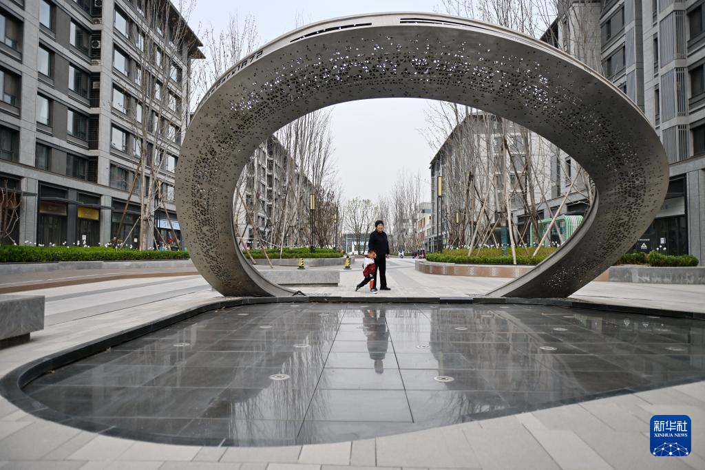 3月26日,居民在雄安新区启动区易安社区内休闲。