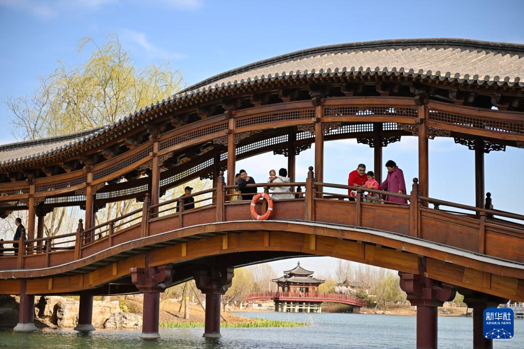 3月19日,市民在雄安新区悦容公园内休闲。