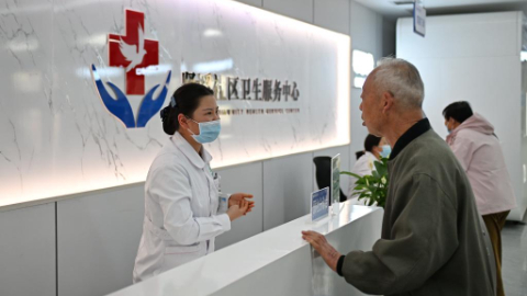 3月25日,老年人在雄安新区容西片区贤溪社区卫生服务中心国医堂看病。