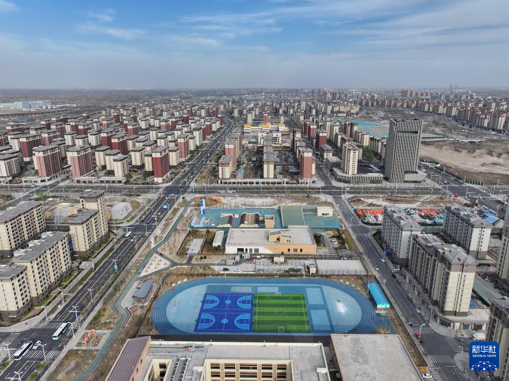 雄安新区容西片区的学校(3月25日摄,无人机照片)。