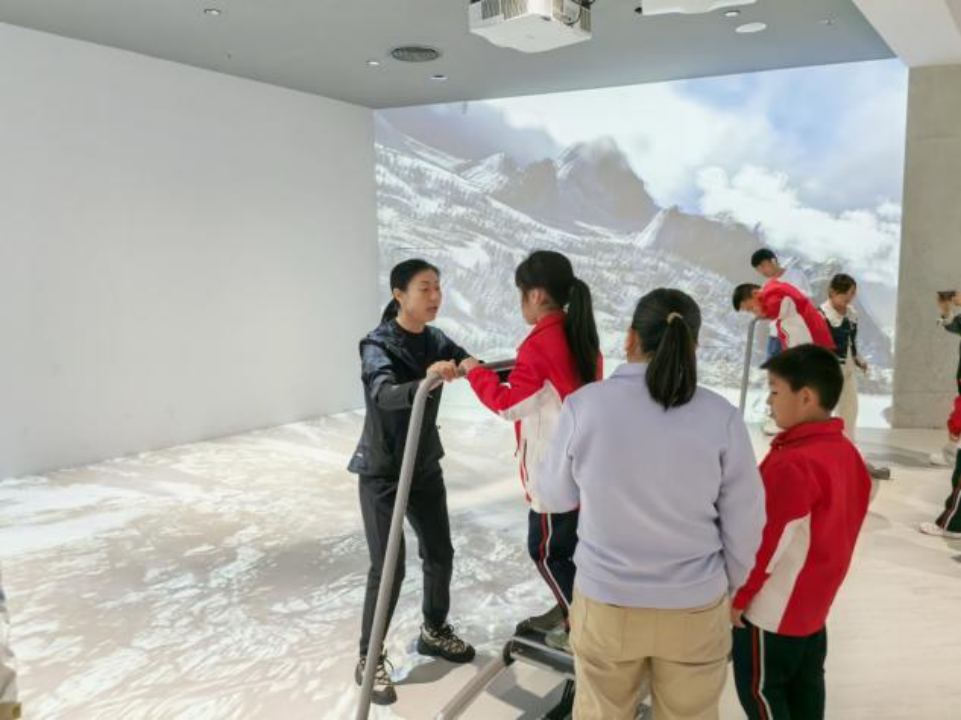学生在崇礼华侨冰雪博物馆互动体验。高盟 摄