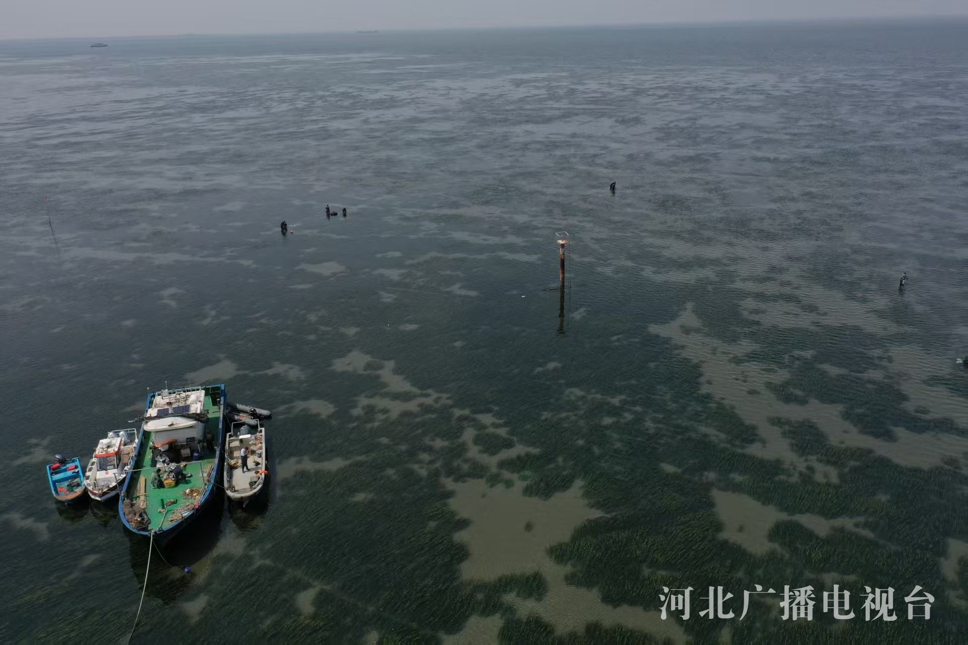 从新戴河渔港启航,随张云岭一同乘船向目标海域行驶约一小时,一片蓝绿交织的广阔景象便映入眼帘。他指向那绵延的“绿色”,告诉记者——这正是珍贵的海草床。这片海域孕育着我国现存单种连片面积最大的海草床,总面积达4427公顷,大小堪比6300多个标准足球场。海草不仅能够稳固海底泥沙,还为鱼、虾、蟹、海马等众多海洋生物提供了理想的栖息与繁殖场所,每年可实现1.2至2.1万吨的固碳量,并吸收3.6吨营养盐,是名副其实的“蓝碳”宝库。