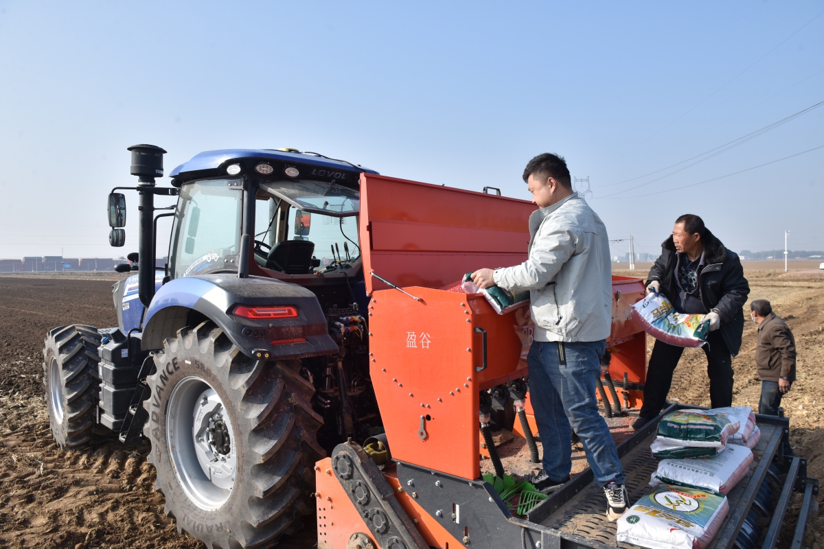 农户向农机内添加小麦种子。邱洪生 摄