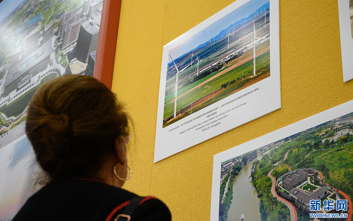 现场展出的另一幅摄影作品,则展示了绿电在张家口的发展。位于张家口市沽源县的中国华电驰盛风电场内,一个个白色风机高高耸立,在苍穹下绵延,巨大的桨叶正将强劲的风转化为绿电。张家口是全国首个可再生能源示范区,也是国家重要的绿色电力生产输出基地。护航冬奥绿电供应、畅通京畿绿电动脉、布局绿色交通……张家口可再生能源示范区在服务京津、产业转型、惠及民生等方面取得了显著成效。