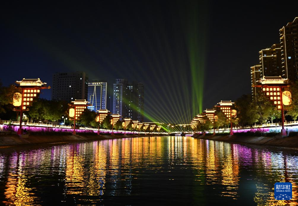 河北省沧州市运河区大运河夜色(10月29日摄)。