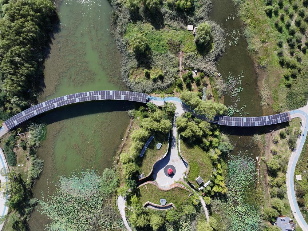 河北华电雄安郊野公园3MW分布式光伏项目是中国华电在雄安新区首个项目,该项目以零碳科普与景观融合为亮点,充分利用郊野公园停车场、观光车停靠站、园区桥梁、部分公共建筑屋顶等空置资源,在保持郊野公园原有自然风貌的前提下,建设分布式光伏发电站、零碳科普展园、光伏桥、充电桩、光伏座椅等设施。