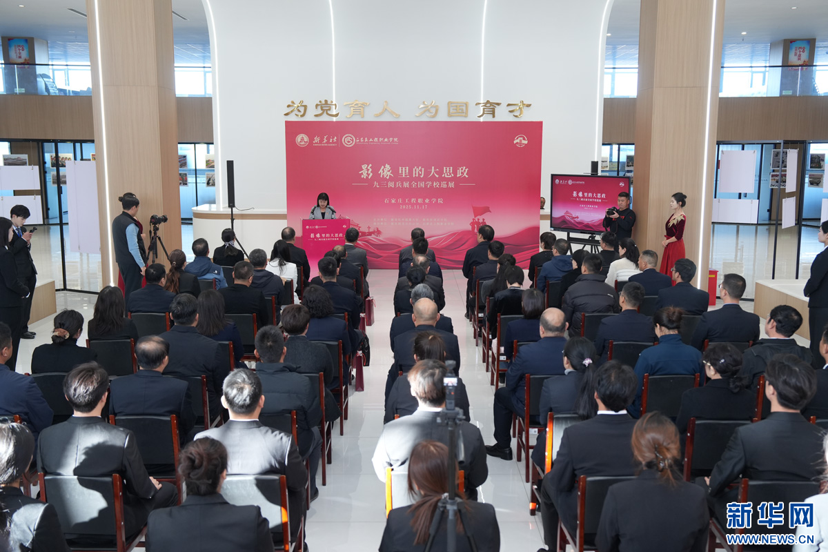 新华网石家庄11月17日电(杨丹宇)铭记历史、珍爱和平,在光影中感悟信仰力量。11月17日下午,“影像里的大思政·九三阅兵展”全国学校巡展石家庄工程职业学院站正式开展。