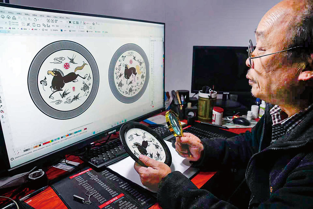 “此前磁州窑都是手工制作,遇到量大的订单很难完成。”王念峰说,“从最初仅能完成平面瓷盘刻画,到逐步突破球形、异形瓷面的立体雕刻,数字化工具将单件作品制作周期大幅缩短,有时还能实现手工难以企及的纹饰精度。”