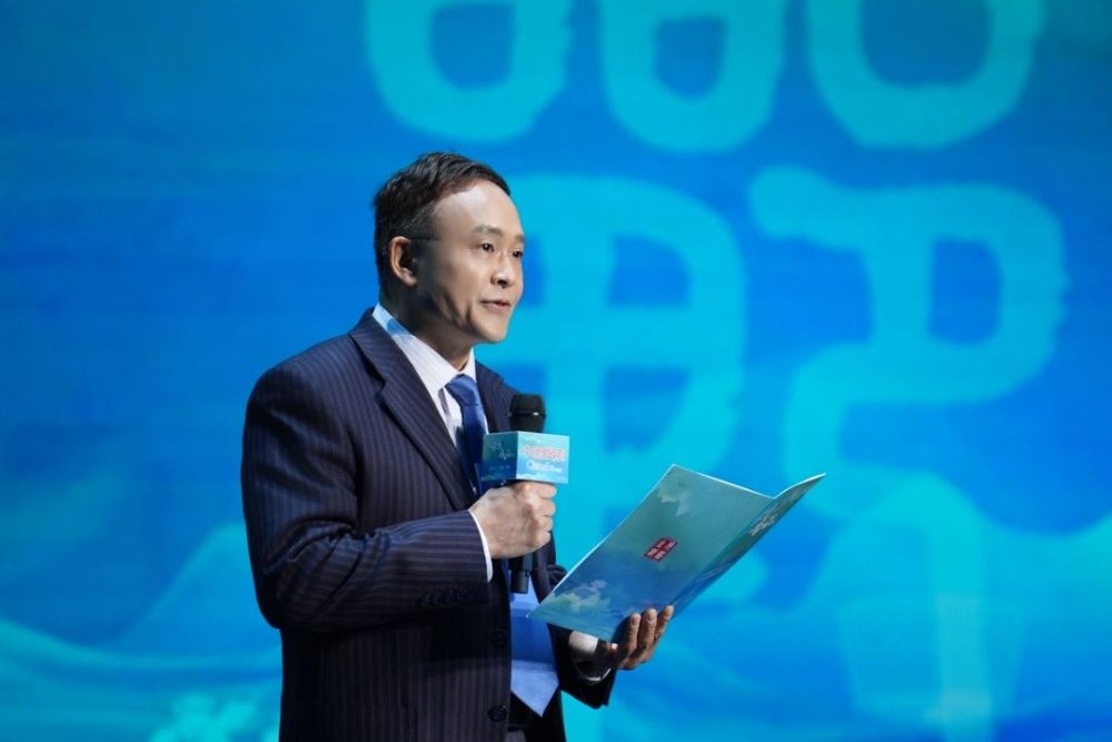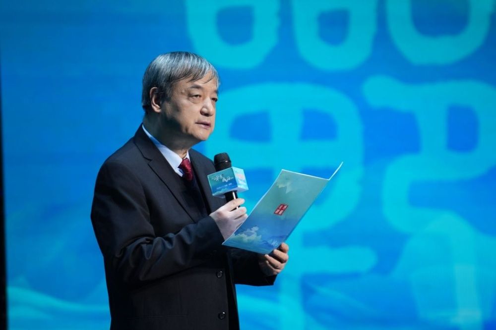 图为中国传媒大学教授、博导,国家语言资源监测与研究有声媒体中心主任邹煜发布“2025年度成语”之“海纳百川”