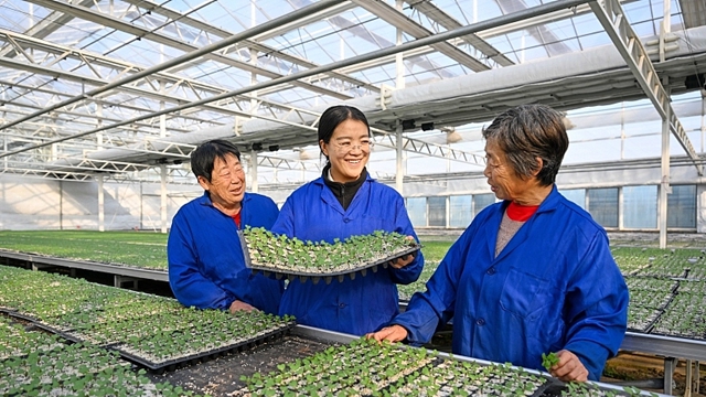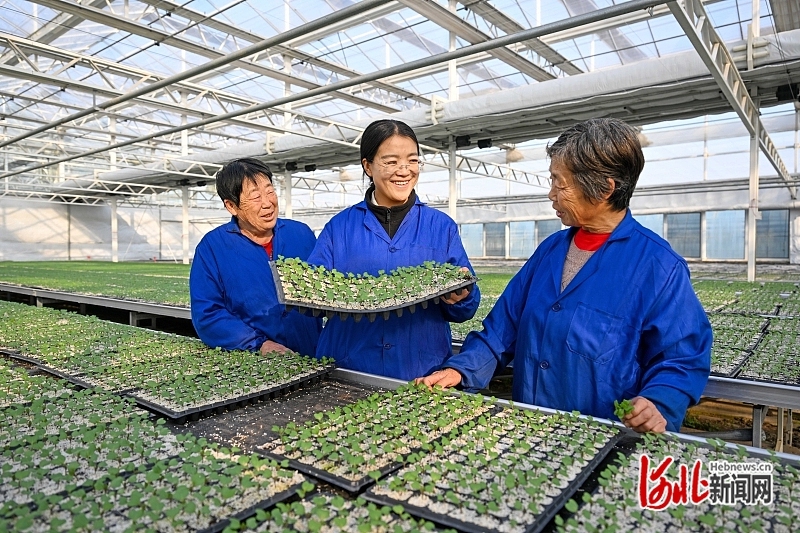 1月19日,张莎莎(中)在向农户介绍育苗经验,并征求意见建议。河北日报记者张昊 摄