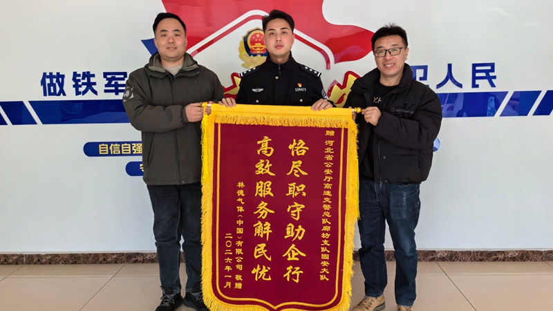 近日,河北省公安厅交通管理总队高速交警七支队固安大队(以下简称“固安大队”)收到林德气体(中国)有限公司送来的一面锦旗,上面写着“恪尽职守助企行 高效服务解民忧”,以此感谢该大队长期以来对林德气体(廊坊)有限公司的支持与贴心服务。