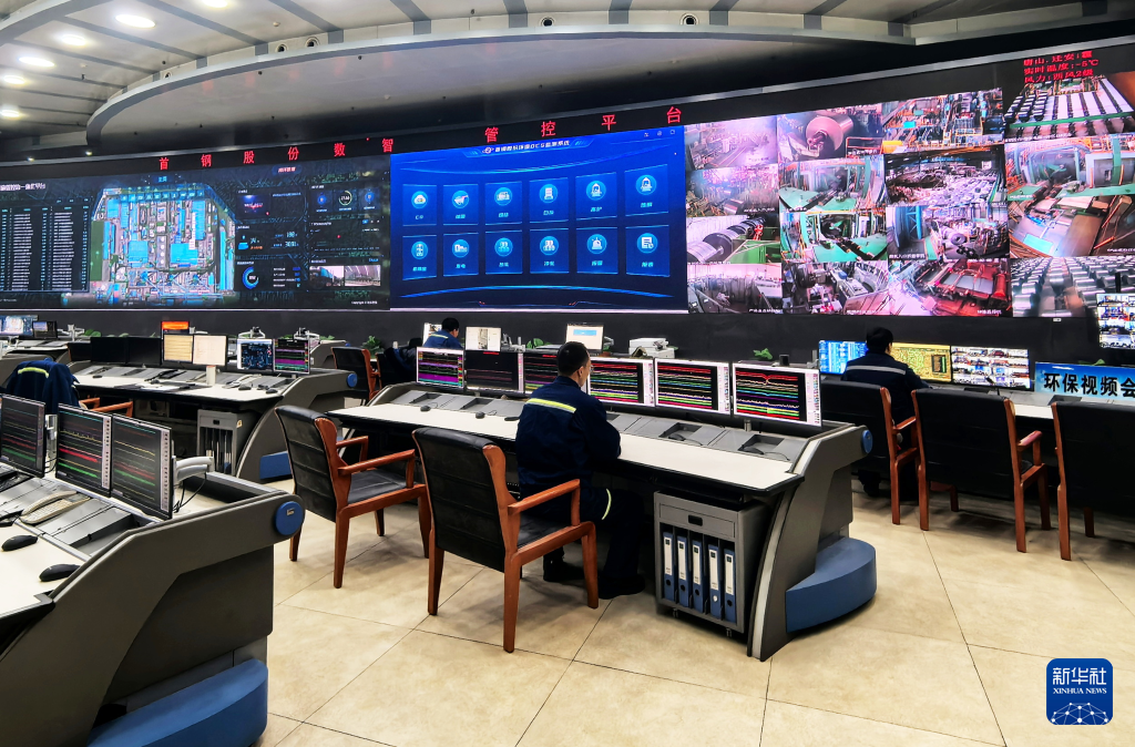 2月5日,首钢迁钢公司生产环保指挥中心内景。新华社记者杨帆 摄