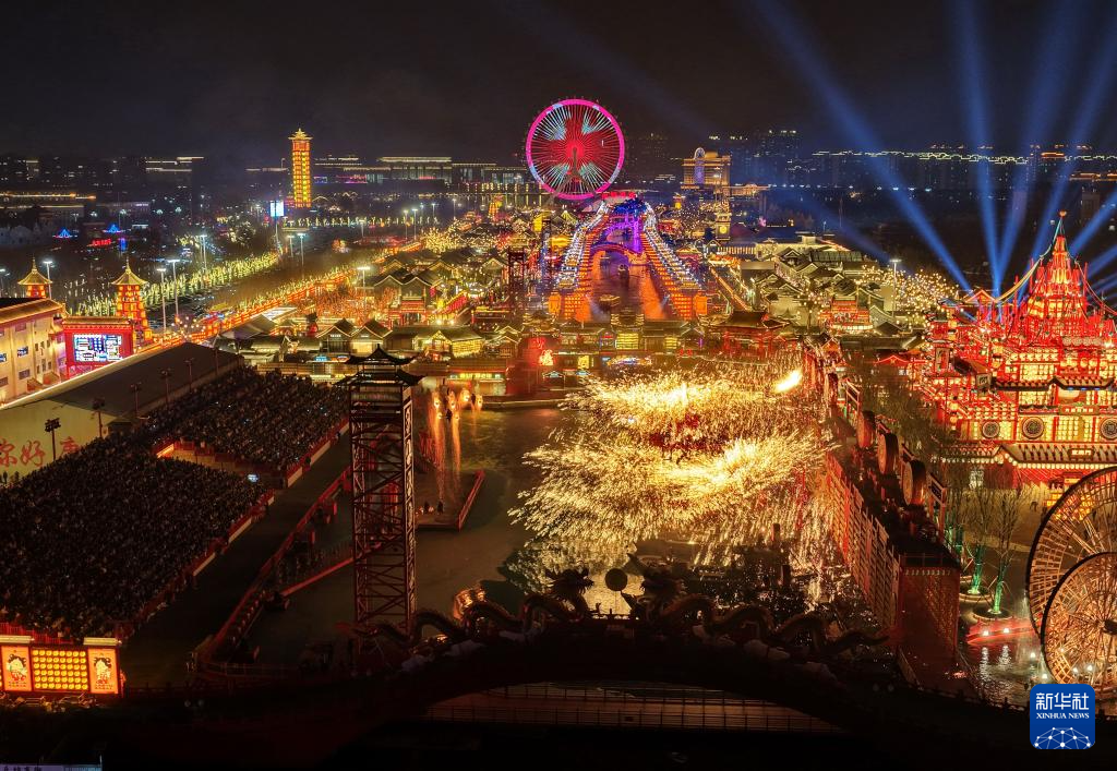 春节期间,河北省唐山市丰南区河头老街灯火璀璨、火树银花,为游客呈现出一场流光溢彩的视觉盛宴。