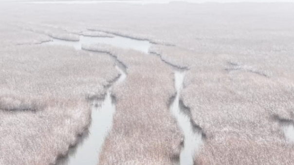 近日,河北沧州南大港湿地迎来降雪,白雪将湿地装扮成一幅银装素裹的生态画卷。当前正值候鸟迁徙期,飞舞的候鸟与皑皑白雪相映成景,尽显人与自然和谐共生的生动景象。(田金蕊、刘冲、宋文峰 沧州广播电视台供稿)