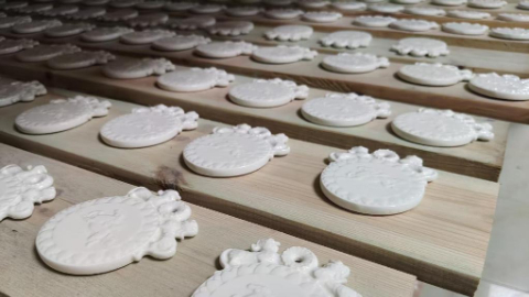 3月13日,烧制出窑的定瓷奖牌在进行阴干。新华社记者 杨帆 摄