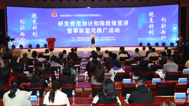 近日,河北省税务局联合河北省科学技术厅,在廊坊市举办“税惠科创 向新而行”河北省研发费用加计扣除政策宣讲暨“事前鉴定”推广活动。省、市两级税务及科技部门相关负责人,相关企业代表等200余人齐聚现场,共话科创税惠政策,共谋企业创新发展。