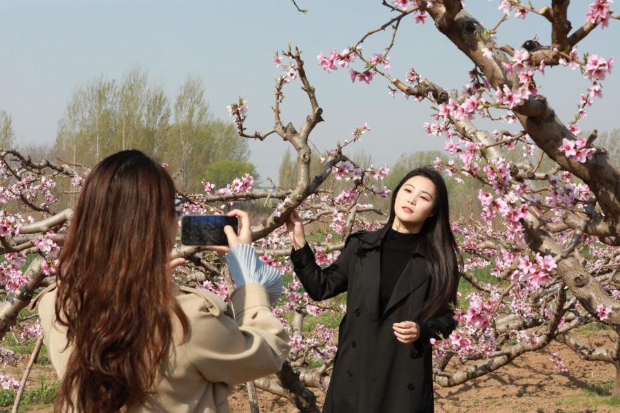 近日,在河北省沧州市沧县,桃花、梨花次第绽放,吸引众多游客前来踏青赏花、拍照打卡。当地立足生态资源优势,以花为媒,打造多元融合场景,激发了春日消费活力。